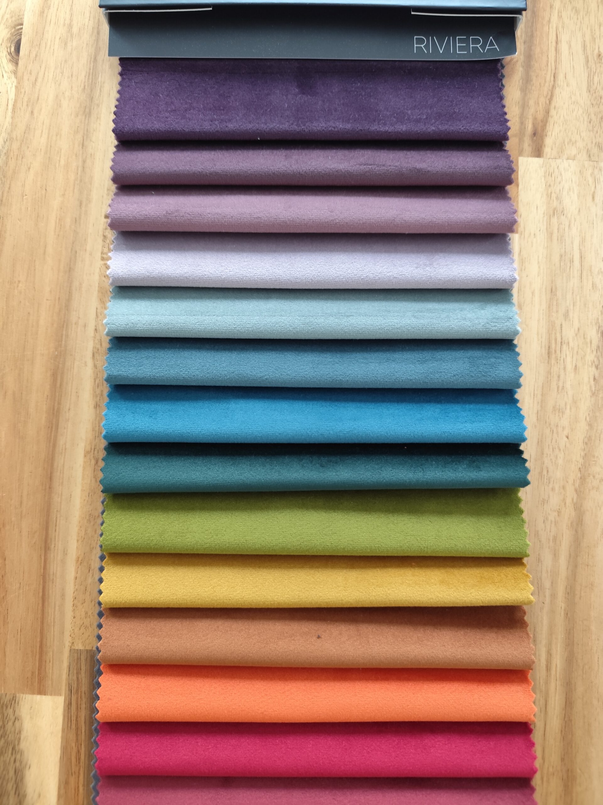 Riviera velvet fabric is a high-quality material designed to bring softness and elegance to upholstered interiors. Its surface is covered with dense, smooth fluff that creates a refined and luxurious appearance. The fabric is pleasantly slippery to the touch, offering a true soft-touch experience that enhances comfort and style.